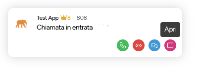 Oltre agli stessi tasti contenuti nei popup interni all’applicazione, i popup esterni hanno anche un tasto aggiuntivo chiamato “Apri” che permette di aprire la finestra principale dell’applicazione.