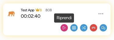 - Riprendi, icona di “play”: riprende la chiamata, facendola tornare attiva (alone verde)