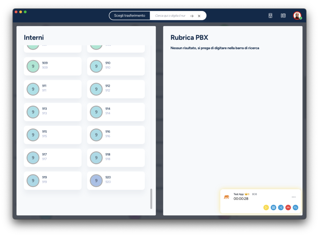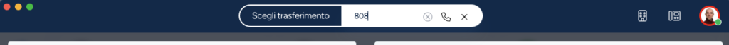 Oppure effettuando la ricerca, sarà possibile, portando il mouse sul contatto a cui si vuole trasferire la chiamata, premere il pulsante “Chiama”