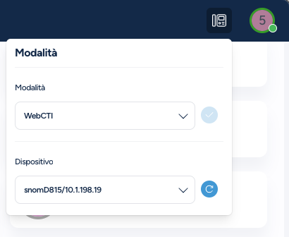 Nel box modalità quando stiamo utilizzando la modalità WebCTI sarà possibile anche selezionare il dispositivo associato.